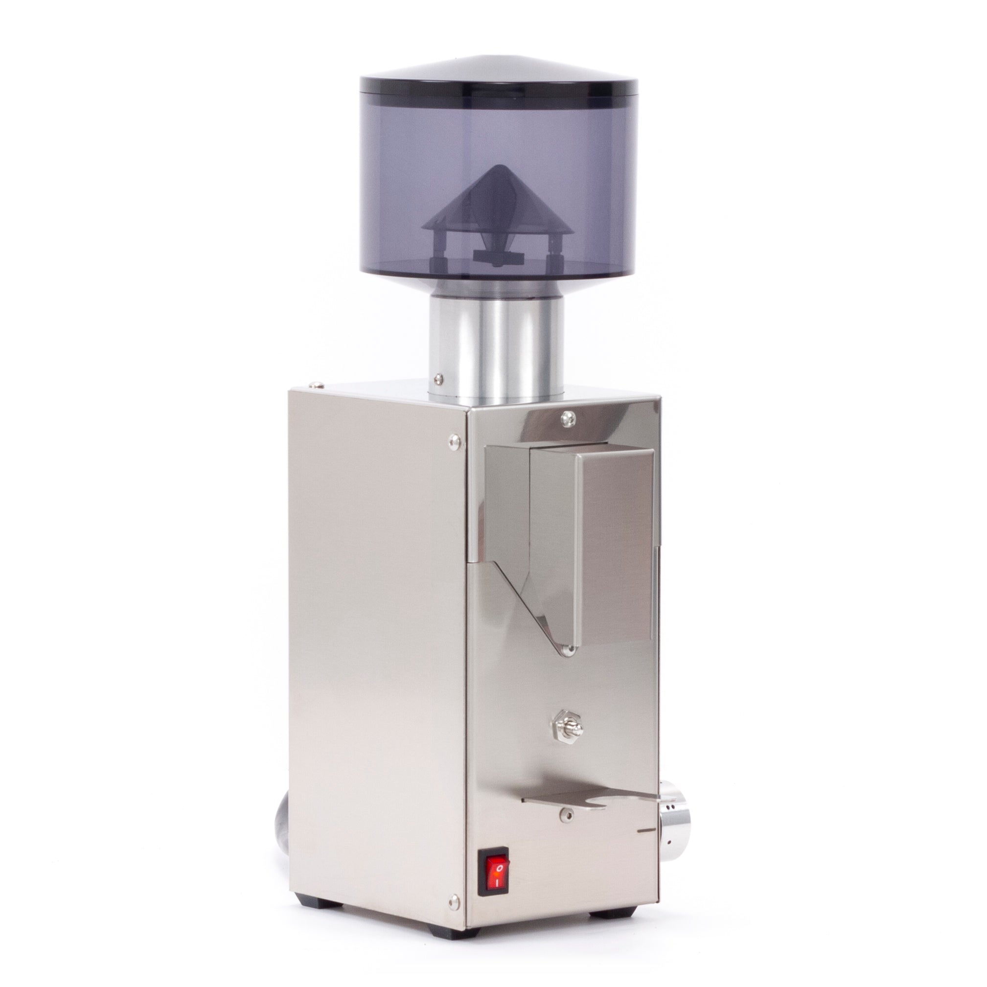 Bezzera’s BB005 TM comes in a compact, stainless steel design so it will look great on your counter top. It has a cast-metal base which provides a sturdy foundation, reduces vibrations and gives you peace of mind knowing that it won’t tip over and create a mess. The 48 mm conical burrs are extremely durable and produce a consistent grind quality while requiring fewer RPM per dose of ground coffee due to their longer grind length. What this means is the heat created will be well dispersed onto a wider grind area, while creating less heat overall. Their slower speed also helps to extend the life of the grinder’s motors.