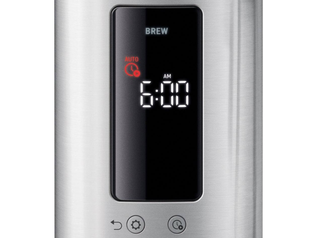 You can program the Luxe’s clock and Delayed Start feature to power on and start brewing automatically, up to 24 hours in advance. Brewed coffee can stay hot at above 150° F for up to four hours in the insulated thermal carafe.