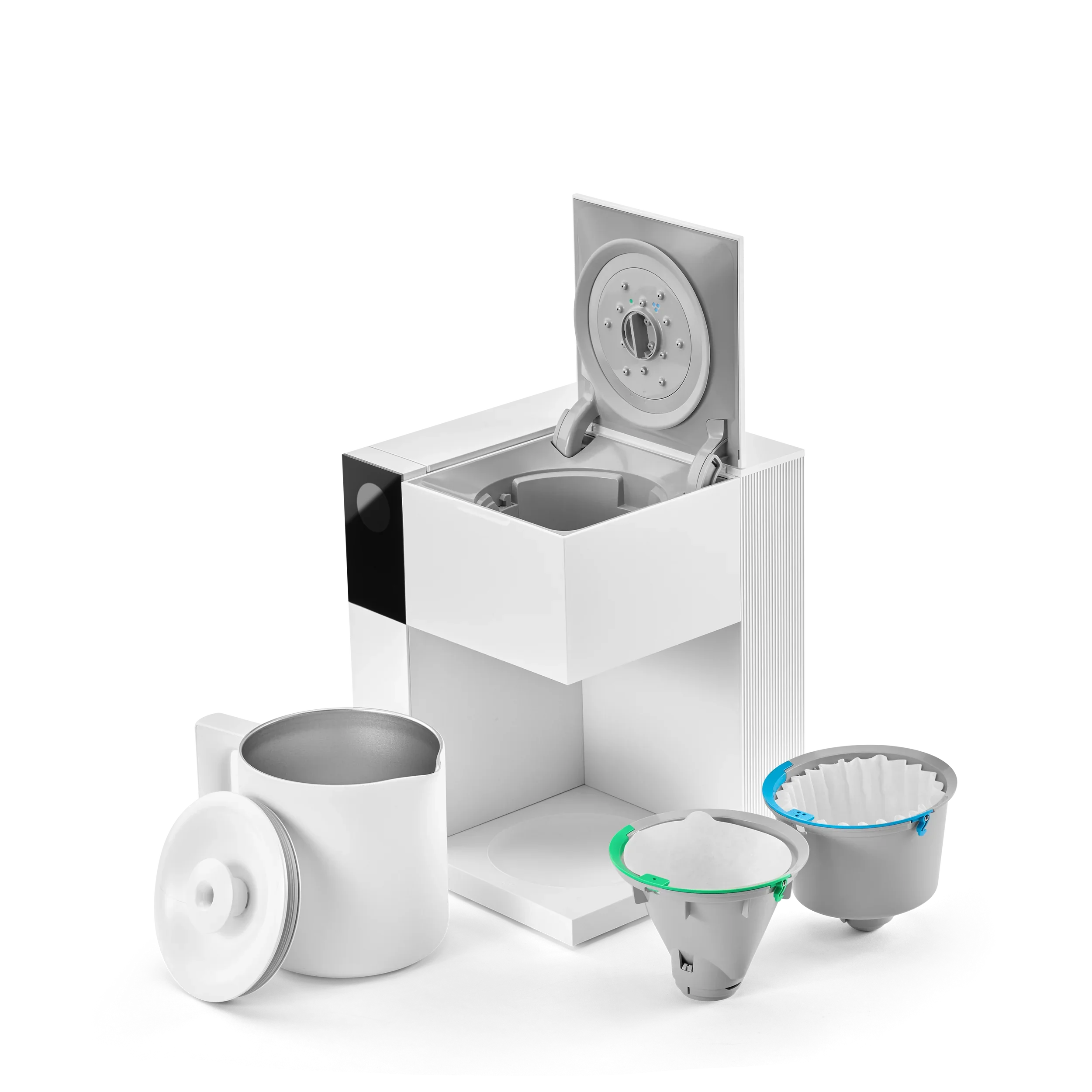 Perhaps most importantly, the Aiden makes exceptional coffee, whether you’re brewing 1 cup or 10. The interchangeable baskets and dual shower head optimize brew water distribution throughout the filter, so you get full saturation of your grounds every time. The Aiden’s thermal carafe keeps coffee hot for hours, and the silicone seal in the top prevents excessive steam from escaping and damaging your cabinets.