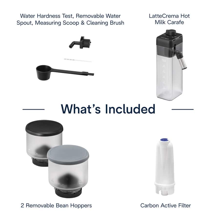 - Automatic Milk Frother: Instantly froth milk or plant-based alternatives into velvety smooth hot foam with the included LatteCrema Hot System.